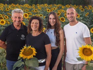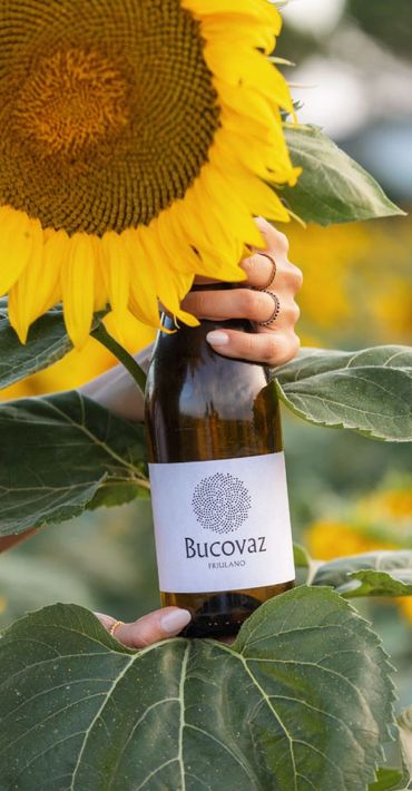 Simone traveled the world for years, from America to Australia and New Zealand. Serena, who thought she would take a different path, rediscovered the joy of walking among the vineyards of Dolegnano alongside her brother. A safe haven was waiting for us: our parents, Elodia and Giovanni, who have always made wine their most awaited journey. Whenever we set off, there are two things we always bring with us. The origin of our surname, Bucovaz, which in Slovenian refers to someone living surrounded by nature, and the sunflower, our company logo, symbolizing joy, warmth, and family unity.